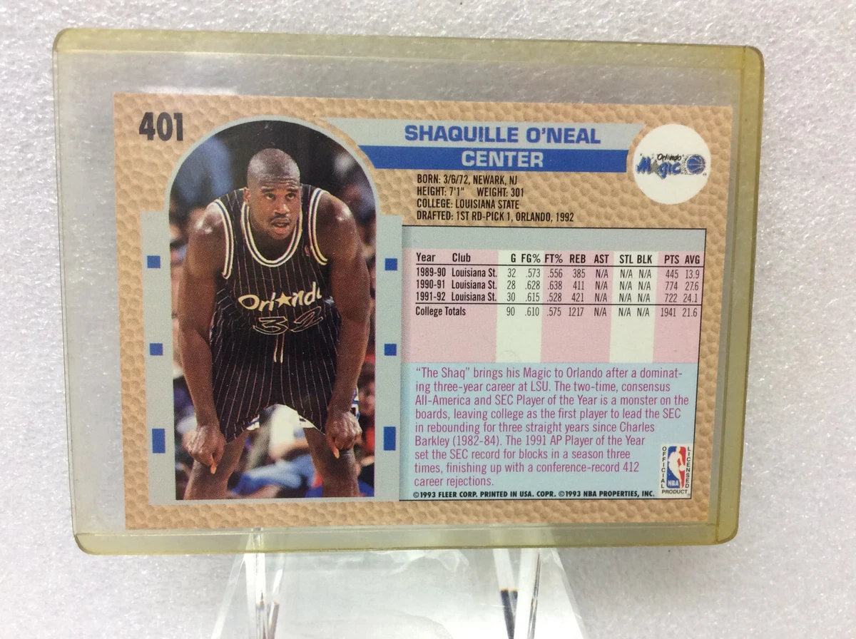 92 93 Fleer Shaquille O Neal Shaq Rookie Card 401 Orlando Magic Ebay